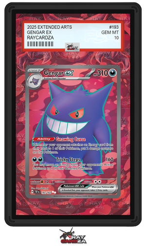 Extended Artworks: In house designed artworks that can suit PSA slabs to showcase OR hide the card's grade as well as other graded companies with similar dimensions. Seeking a TAG extension? This innovative design positions itself behind your slab, allowing the transparent acrylic to reveal your card's stunning artwork while preserving full visibility of the grading information. Experience the perfect balance of protection and presentation.